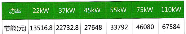 針對(duì)于普通螺杆(gan)機具體節能(neng)對應表見下(xià):